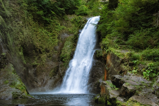 秋保大滝は幅6m・落差55mの直瀑で、国指定の名勝にも指定されている日本三名瀑のひとつです。新緑が映える初夏には、絶景を楽しめます。川沿いの遊歩道では水しぶきを浴びるほど近づけるので、涼しさも感じられるでしょう。